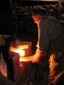 In the 2 day workshop in July, in our Clay Cliff Creek studio, Owen demonstrated his techniques on making very large and tiny refined pots. As most of his work is wood fired he explained that the best results of the firing occur perhaps only on one section of the pot. His logic, which proved to be correct, is that if you make a tiny pot (6 cm tall) then the whole pot gets that special spot or flash of colour! In his demonstration of making large pots “easily “his pot was made in sections. That is, the first section was thrown and allowed to stiffen. 5 or so thicker coils were added by hand and re thrown. In between adding each coil, Owen used a gas burner to fast track the stiffening process. This was fascinating as well as a bit scary to watch as the flames licked around the pot in our studio.